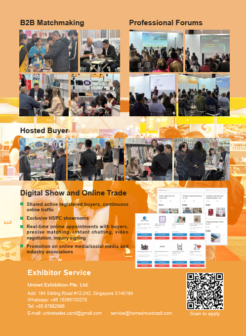 Home Show Brazil 2025 sẽ tổ chức mô hình “Triển lãm trực tiếp + Triển lãm kỹ thuật số + Thương mại trực tuyến” đổi mới để cho phép các nhà triển lãm chia sẻ nguồn lực chính xác của người mua từ các kênh triển lãm trực tiếp và trực tuyến, giúp nhà triển lãm thu được lợi nhuận từ các mối quan hệ kinh doanh với Khối Thị trường chung Nam Mỹ (MERCOSUR)